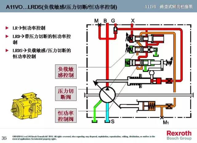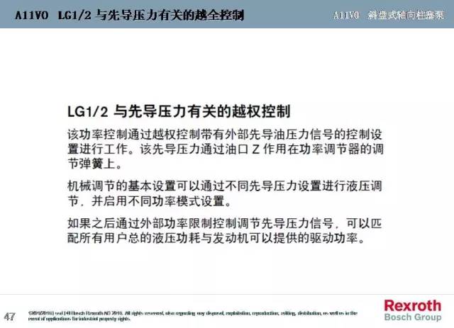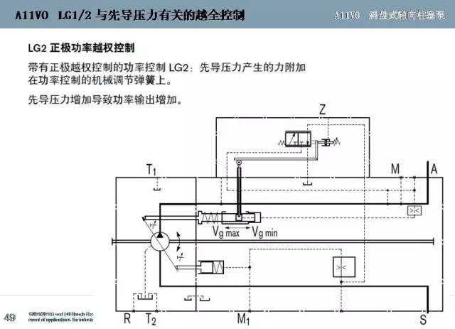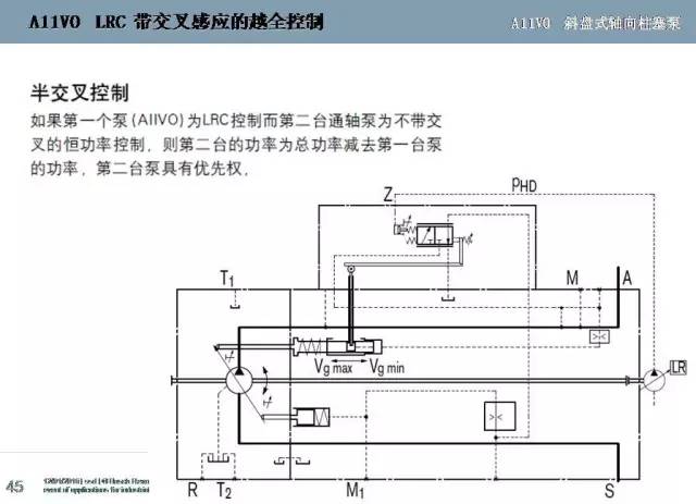 REXROTH力士樂變量柱塞泵A11VO系列壓力控制、流量控制、恒功率控制、交叉總功率控制、半交叉功率控制、腹肌功率越權控制、正極功率越權控制、電子越權控制等變量原理圖文詳解。