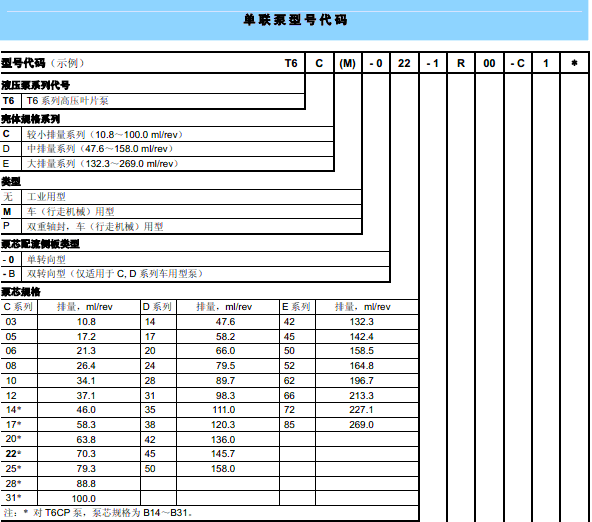 DENISON葉片泵丹尼遜T6D系列型號說明