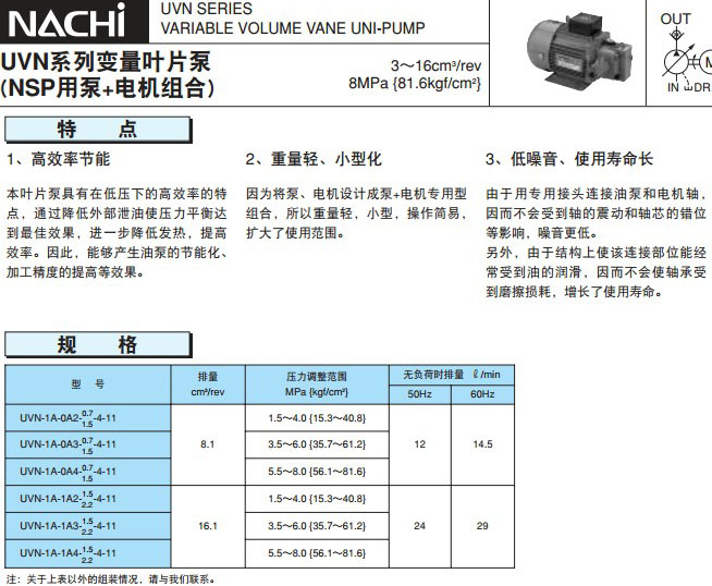 NACHI不二越電機泵UVN-1A-1A3-2.2-4-11